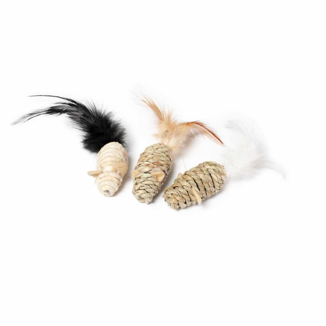 Die drei kleinen Mäuse aus Seegras sind ein tolles Katzenspielzeug. Dank der natürlichen Materialien und der dezenten Farbgebung sind sie ideal für Katzenbesitzer, die keine Lust auf das übliche, bunte Katzenspielzeug haben. Und Stubentiger freuen sich, weil sich das Seegras toll mit den Krallen bearbeiten lässt und die Feder zu immer neuen Spielrunden animiert. Verführerischer Catnip-Duft tut sein Übriges, damit die Mäuse zum neuen Lieblingsspielzeug werden.